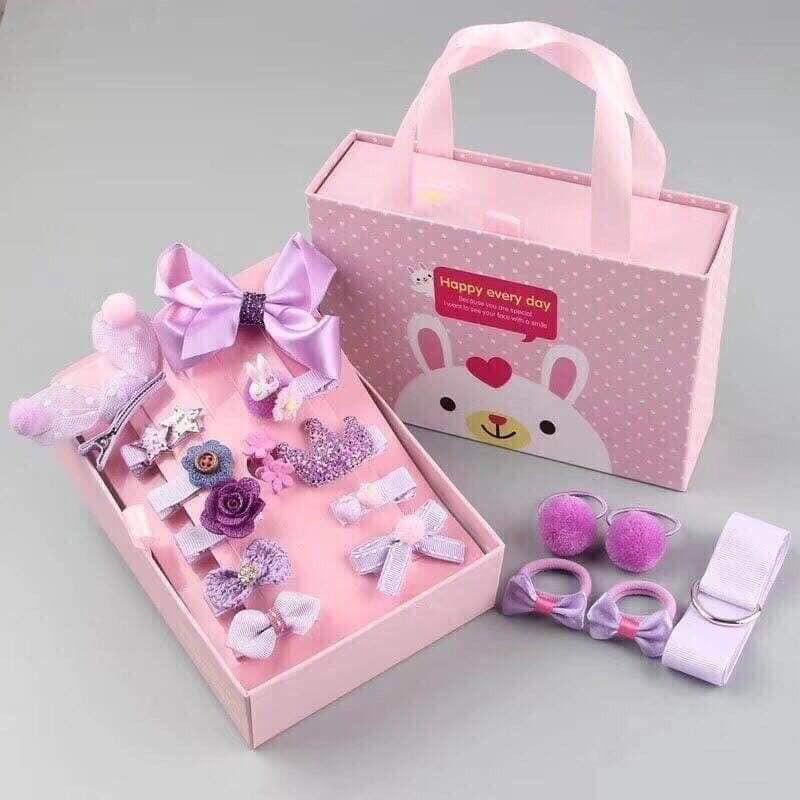 ✨Hộp nơ buộc tóc 18 món kèm túi xách
