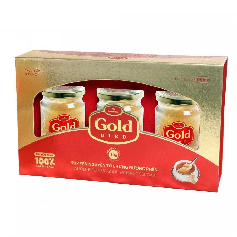 - Yến sào: Hỗ trợ tăng sức đề kháng cho cơ thể, chống lão hóa, ổn định thần kinh, trí nhớ, kích thích tiêu hóa, phục hồi sức khỏe nhanh chóng trong thời gian dưỡng bệnh. Đối tượng sử dụng: thích hợp cho mọi đối tượng đăc biệt trẻ từ 3 tuổi trở lên Sản xuất: Việt Nam Thành phần: Nước, , Yến sào (25%), đường phèn (4%) , chất ổn định (E406), hương liệu dùng cho thực phẩm. Cách dùng: - Lắc nhẹ trước khi uống, ngon hơn khi uống lạnh, tránh đun nóng sản phẩm trước khi sử dụng. - Uống trực tiếp từ lọ. --Uống từ 1 - 2 lọ/ngày. Sản phẩm thích hợp cho người lớn tăng sức đề kháng giúp cơ thể khỏe mạnh, phục hồi sức khỏe cho người bệnh, Không sử dụng sản phẩm khi hết hạn, nên sử dụng một lần sau khi mở nắp.