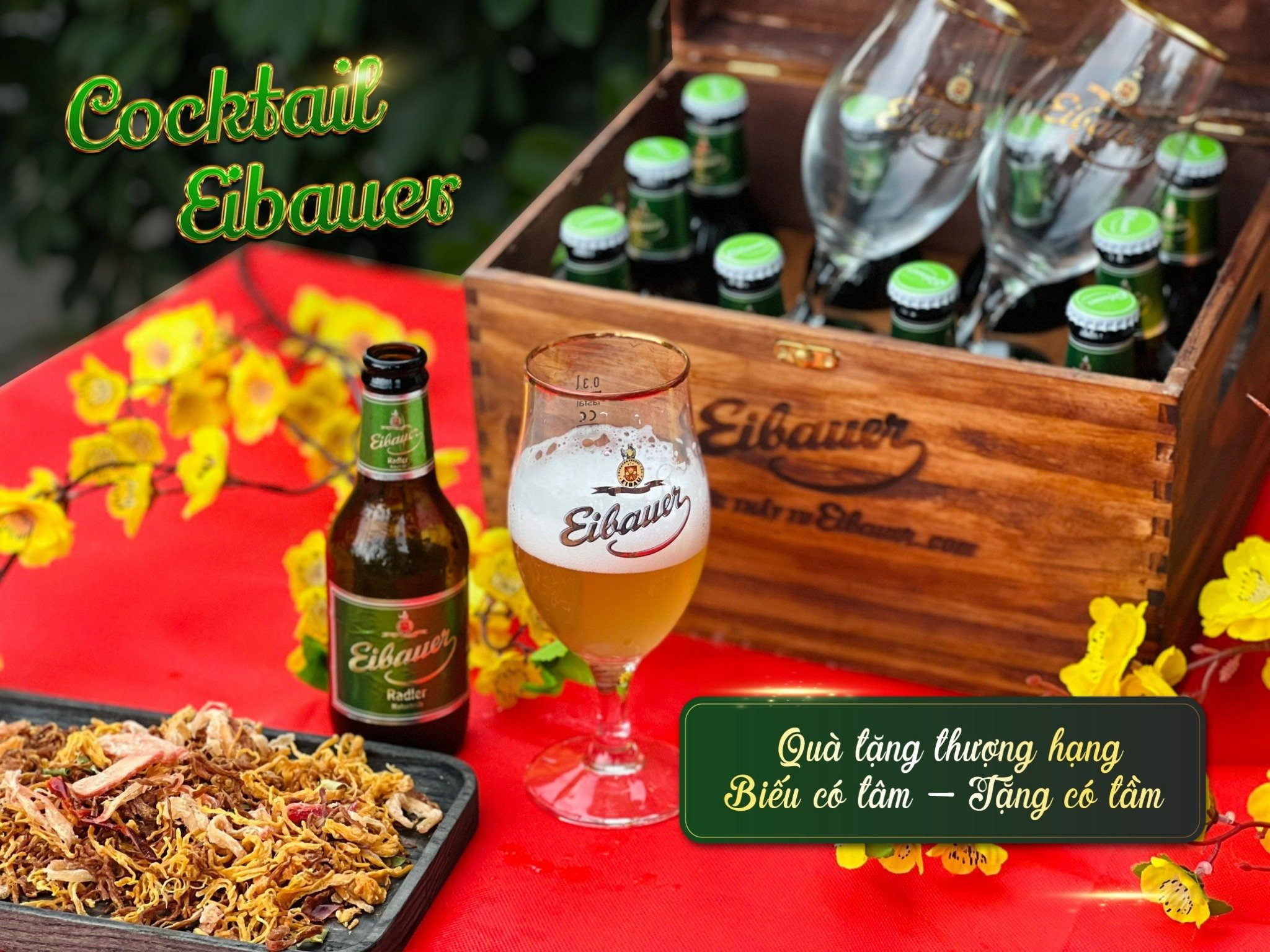 Hộp Quà Gỗ 12 Chai Bia Đức Nhập Khẩu Chính Hãng - Hộp Quà Tết Sang Trọng Xuất xứ / Origin: Đức / Germany HSD: 18 tháng kể từ ngày sản xuất COCKTAIL EIBAUER RADLER