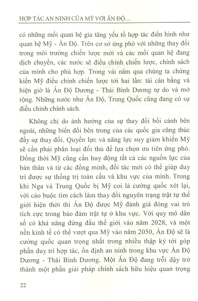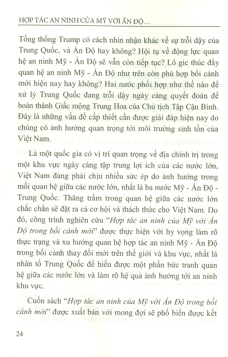 ✨Hợp Tác An Ninh Của Mỹ Với Ấn Độ Trong Bối Cảnh Mới (Sách chuyên khảo)