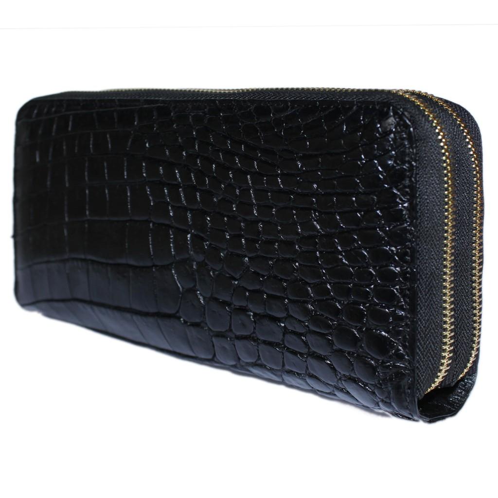 ✨HP3750 - Ví nữ da cá sấu Huy Hoàng trơn nhiều ngăn cầm tay màu đen