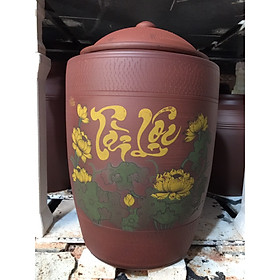 Hũ đựng gạo tài lộc vẽ sen 15kg gốm Gia Hưng Bát Tràng
