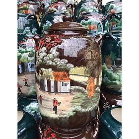 Chum ngâm rượu tráng men vẽ cảnh đồng quê 10-15-20-30-50L Gốm phúc Tâm an