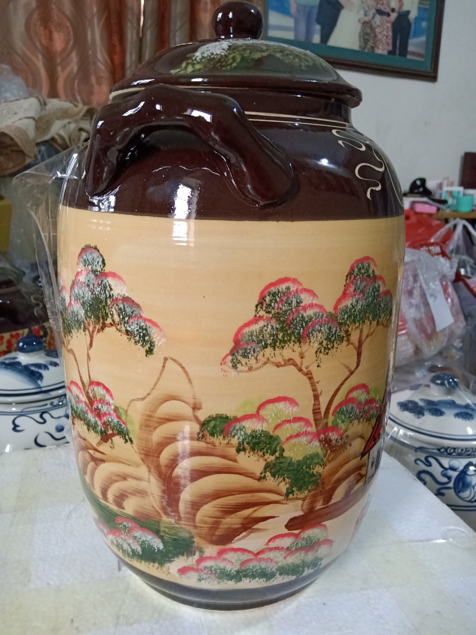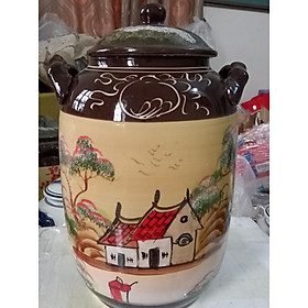 ✨Hũ đựng rượu gạo gốm sứ Bát Tràng vẽ phong cảnh loại 30L