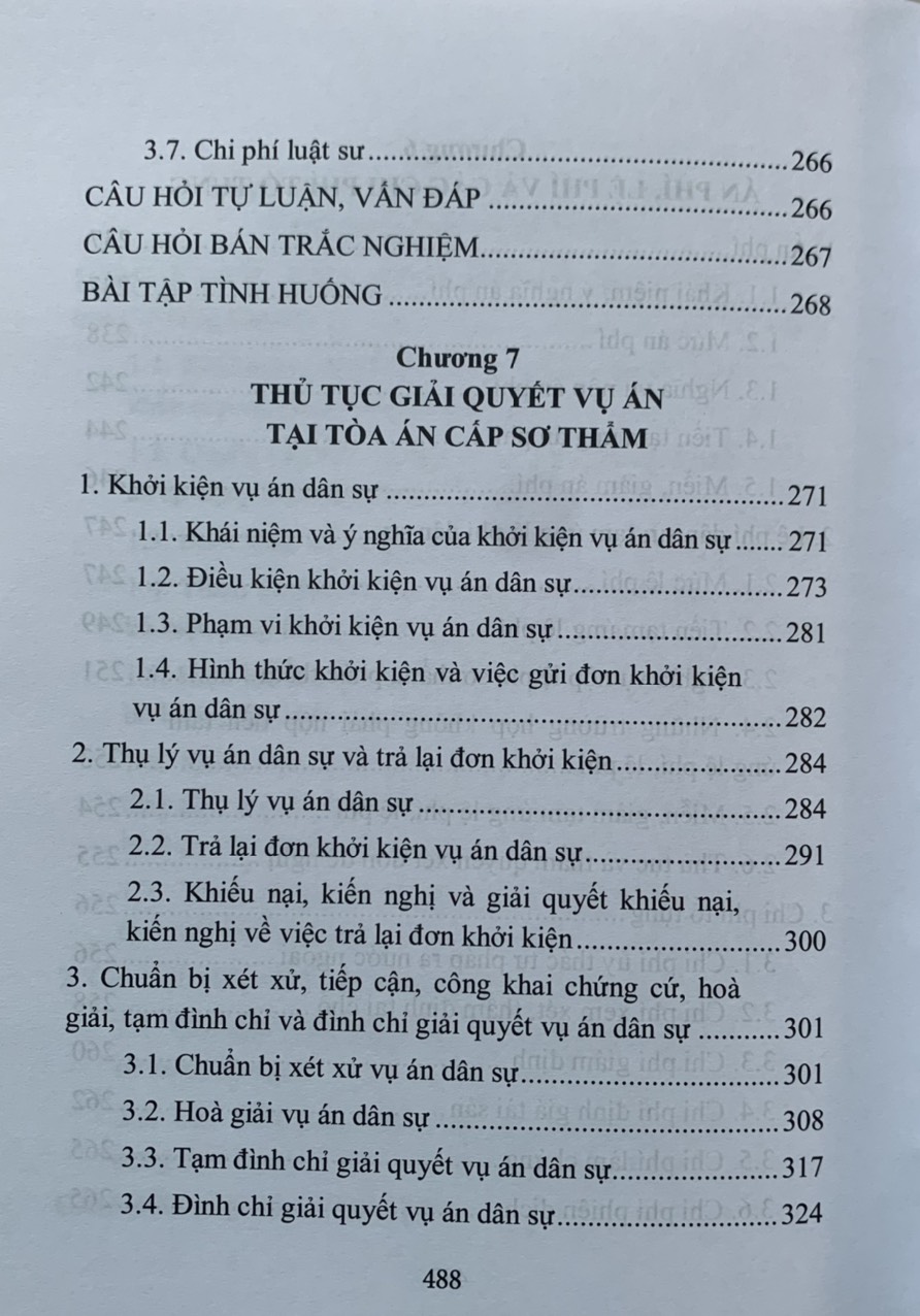 Cuốn sách được chia thành 9 chương, trong đó mỗi chương trình bày cô đọng những nội dung cơ bản về những vấn đề chung của luật tố tụng dân sự Việt Nam và thủ tục giải quyết các vụ án dân sự. Mỗi mục ngoài phần trình bày những kiến thức,lý luận cơ bản, quy định của pháp luật cơ bản, quy định của pháp luật hiện hành còn có các tình huống, ví dụ minh họa. Đặc biệt cuối mỗi chương đều có các câu hỏi lý thuyết , câu hỏi trắc nghiệm, bài tập tình huống và gợi ý giải quyết tình huống .