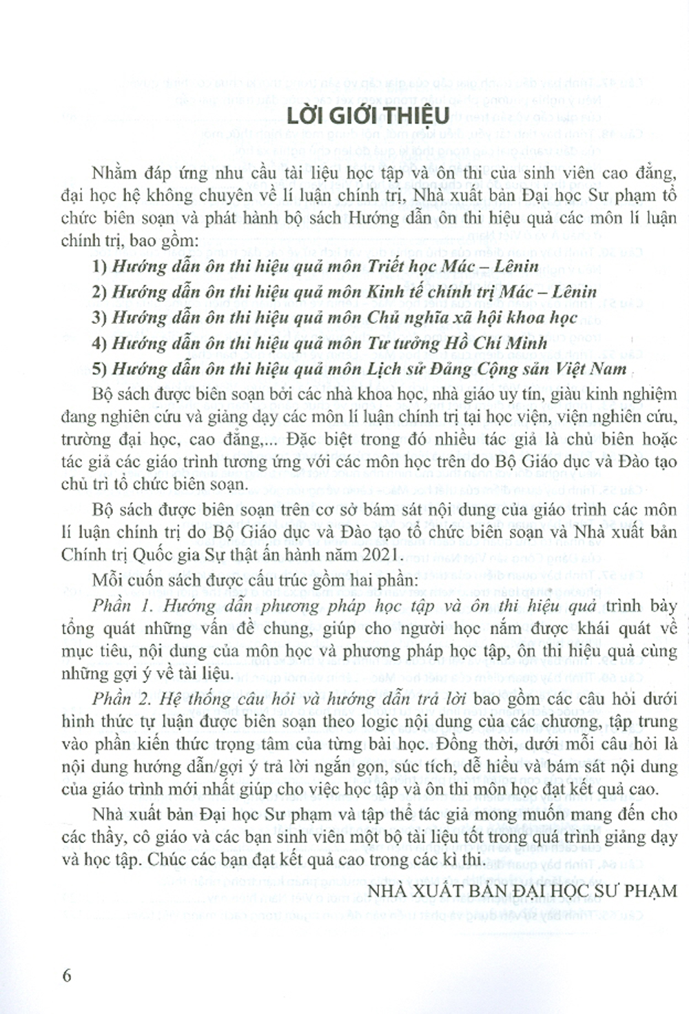 Bộ giáo trình lý luận chính trị gồm 5 cuốn dành cho bậc đại học hệ không chuyên lý luận chính trị. Bộ sách là tài liệu giảng dạy, học tập cho giảng viên, sinh