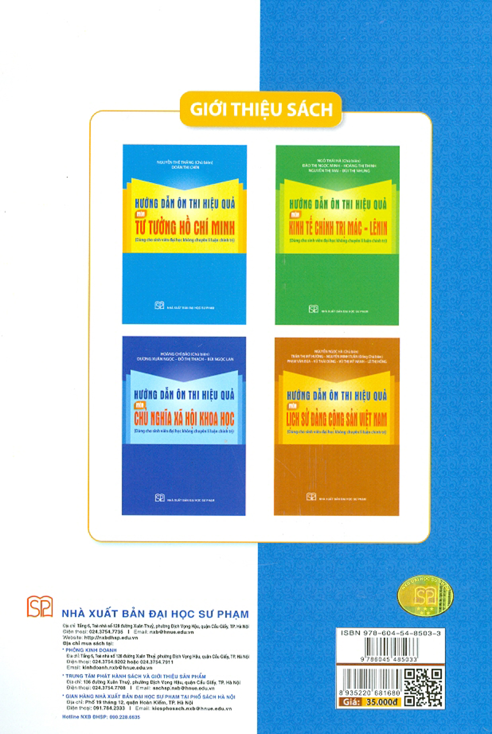 Bộ sách được biên soạn bởi các nhà khoa học, nhà giáo uy tín, giàu kinh nghiệm Nghiên cứu và giảng dạy các môn học chính trị tại viện học, Viện nghiên cứu, trường đại học, cao đẳng, Đặc biệt trong đó nhiều tác giả là chủ biên hoặc tác giả của các chương trình giáo dục tương ứng với các môn học trên do Bộ Giáo dục và Đào tạo chủ trì tổ chức biên soạn. Bộ sách được biên soạn trên cơ sở bám sát nội dung của giáo dục các môn học chính trị của Bộ Giáo dục và Đào tạo tổ chức biên soạn và Nhà xuất bản Chính trị Quốc gia Sự thật ấn hành vào năm 2021. Mỗi phần cấu trúc của cuốn sách được bao gồm: Phần 1. Hướng dẫn phương pháp học tập và ôn thi hiệu quả trình bày tổng quát các vấn đề chung, giúp người học nắm được khái niệm về mục tiêu, dung lượng của môn học và phương pháp học tập, ôn thi hiệu quả cùng những gợi ý về tài liệu. Phần 2. Hệ thống câu hỏi và hướng dẫn trả lời bao gồm các câu hỏi dưới hình thức tự động được soạn thảo theo nội dung logic của các chương, tập trung vào phần kiến ​​thức trọng tâm của từng bài học. Đồng thời, bên dưới mỗi câu hỏi là nội dung hướng dẫn / gợi ý trả lời ngắn gọn, tích cực, dễ hiểu và bám sát nội dung của chương trình giáo dục mới nhất giúp học tập và ôn thi môn học đạt kết quả cao. Trân Trọng Giới Thiệu.