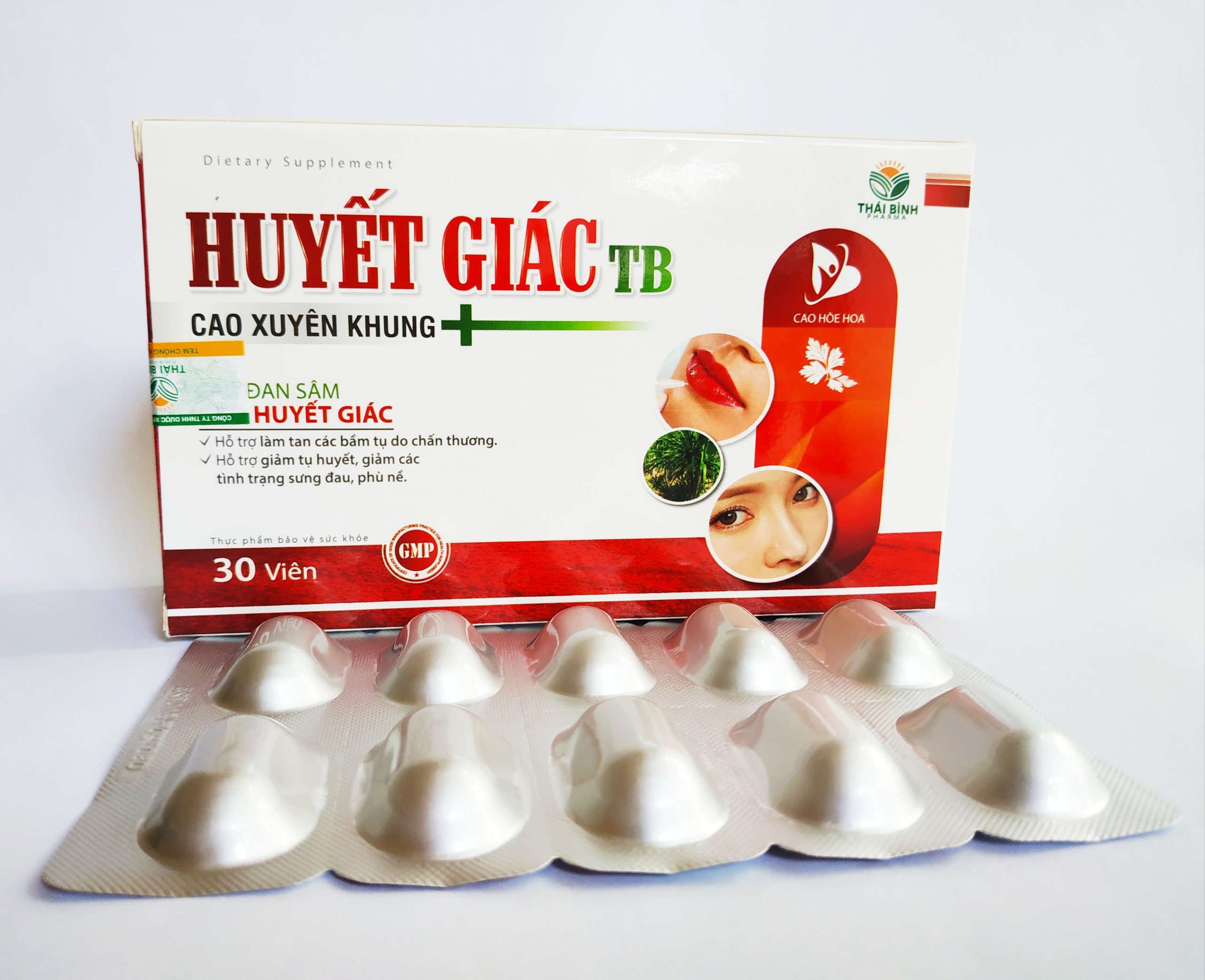 - Làm tan các vết bầm tím, tụ máu sưng đau do chấn thương, va đập, bị đòn, té ngã, tai nạn lao động, hoạt động thể thao. - Tiêu sưng, giúp các vết xây xát, vết loét, mụn nhọt, vết thương hở nhanh lành, chóng liền sẹo. - Bầm tím do thẫm mĩ: như nâng mũi, cắt mí, xăm chân mày, xăm môi Uống HUYẾT GIÁC TB mau lành , tan máu bầm nhanh mà ko cần đến thuốc Tây Thích hợp cho những bạn đi phẫu thuật thẫm mỹ mà không muốn dùng thuốc tây. ĐỐI TƯỢNG SỬ DỤNG: Người bị sưng nề, bầm tụ do chấn thương, tổn thương mô mềm Người sau phẫu thuật thẩm mỹ: như xăm môi, xăm chân mày, nâng mũi… CÁCH DÙNG: Người lớn: uống 1-2 viên/lần, ngày 2 lần QUY CÁCH ĐÓNG GÓI: Hộp 3 vỉ x 10 viên
