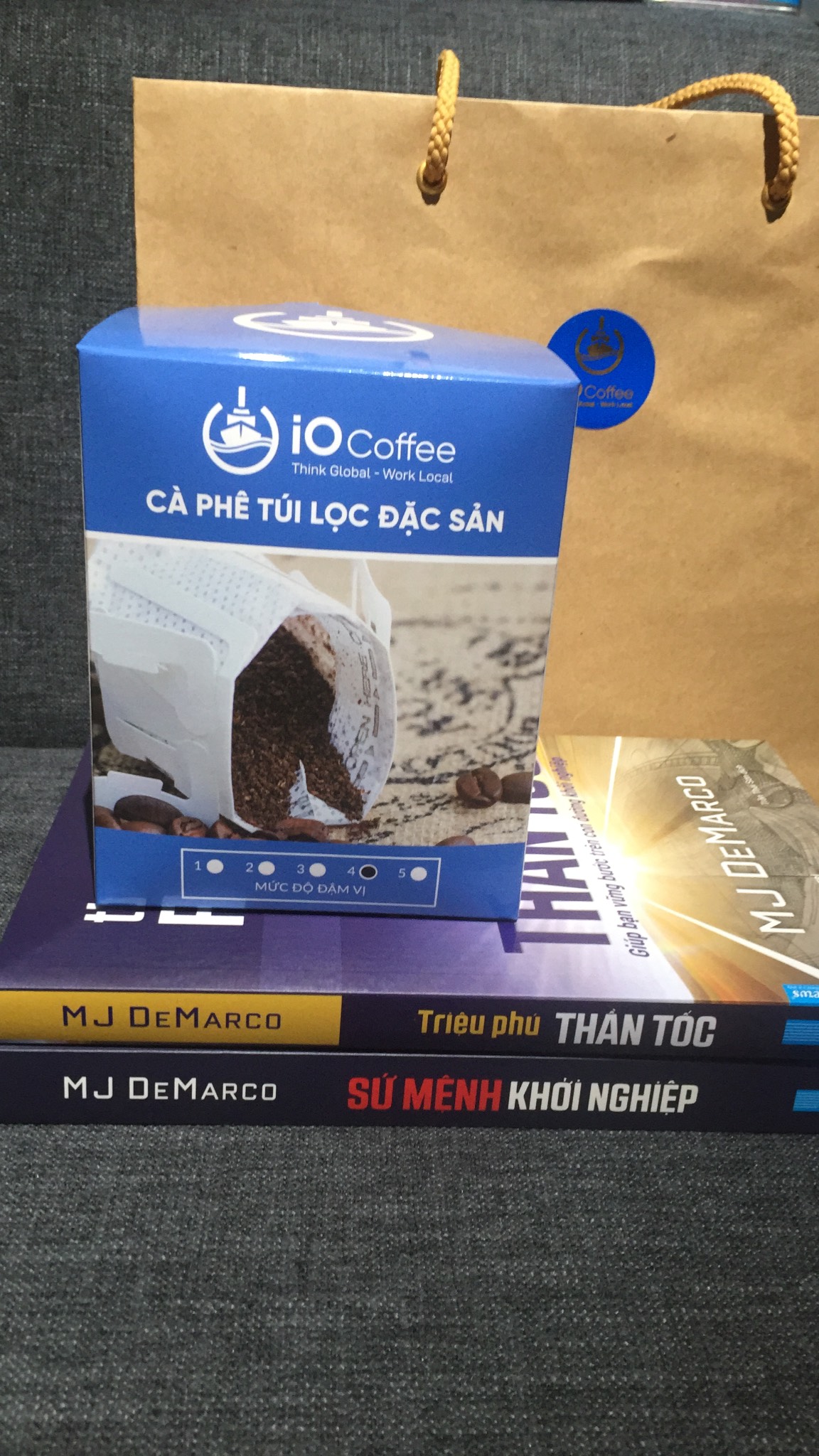 IO Coffee Khởi nghiệp thần tốc Sản phẩm gồm: - 1 hộp Cà phê Phin Giấy Đặc Sản / 01 Hộp (10gói x 15g) - 1 bộ Sứ mệnh khởi nghiệp và Triệu phú thần