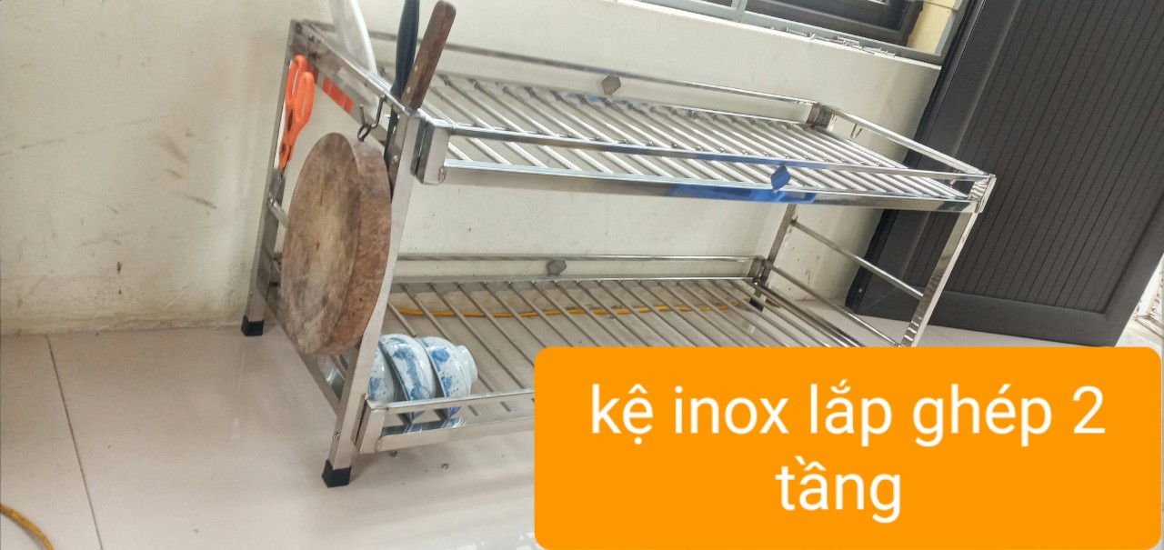 Mua tại Tiktokcty inox khởi hòa chuyên sx các sp về inox ,với dòng sp kệ để đồ inox 2 tầng được cty sx như sau 1.... kích thước kệ cao 45cm ,dài 104cm ,sâu 40cm 2 ....khung chính của kệ được làm bằng hộp 2x2 cm ,và được đan bằng phi 10mm ,khoảng các các nan là 4cm 3 kệ được thiết kế 2 tầng lắp ghép , dùng cho soong nồi ,bát đĩa ,dao thớt vv