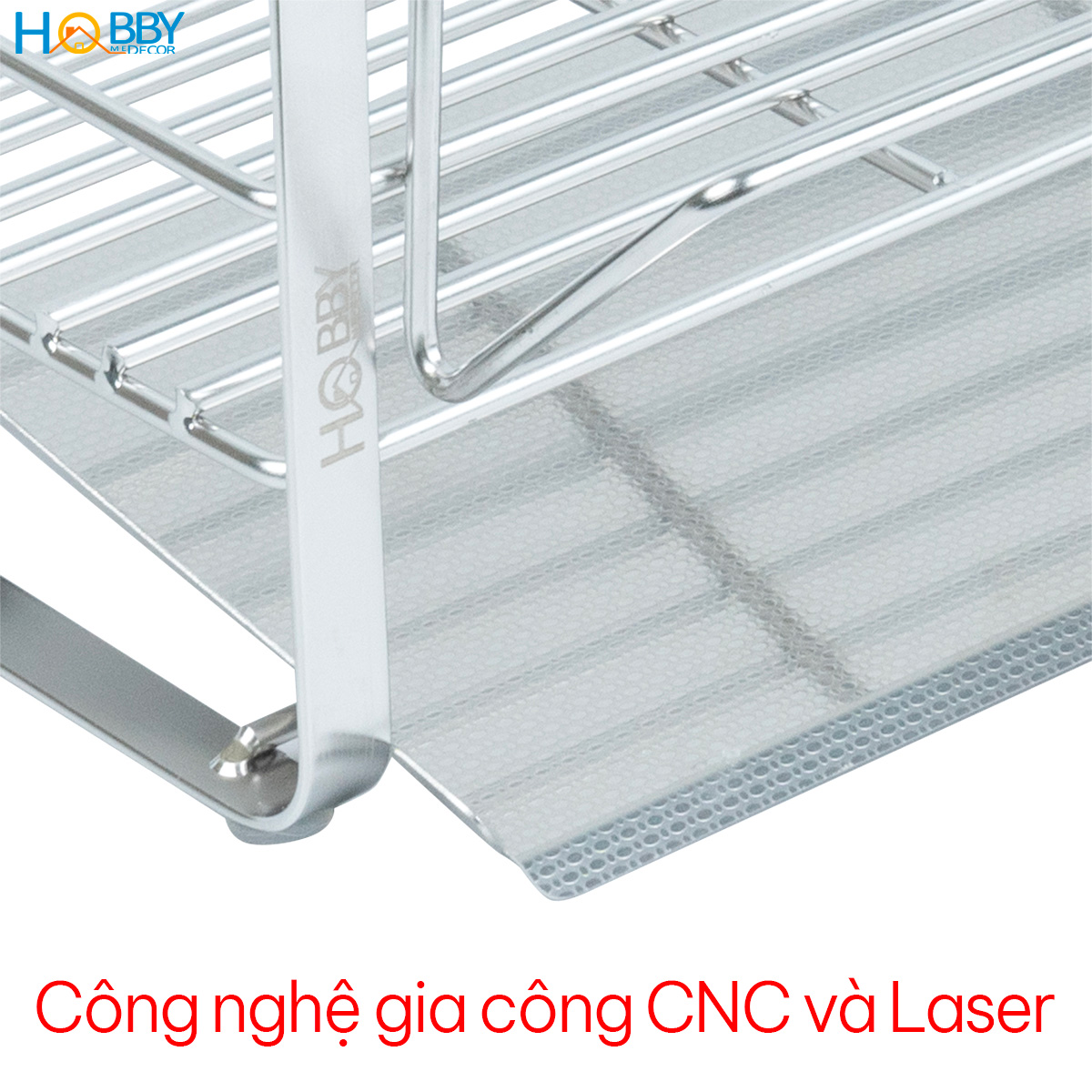 Kệ úp chén đĩa 2 tầng inox 304 Hobby home decor UCD có khay hứng nước Thông tin kỹ thuật - Chất liệu chính: Inox 304 xước không rỉ sét - Có 2 khay nhựa