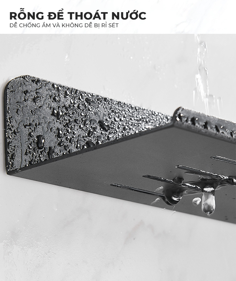 Công năng: Là mẫu kệ nhà tắm dán tường thông minh giúp bạn sắp xếp không gian phòng tắm gọn gàng ngăn nắp.
