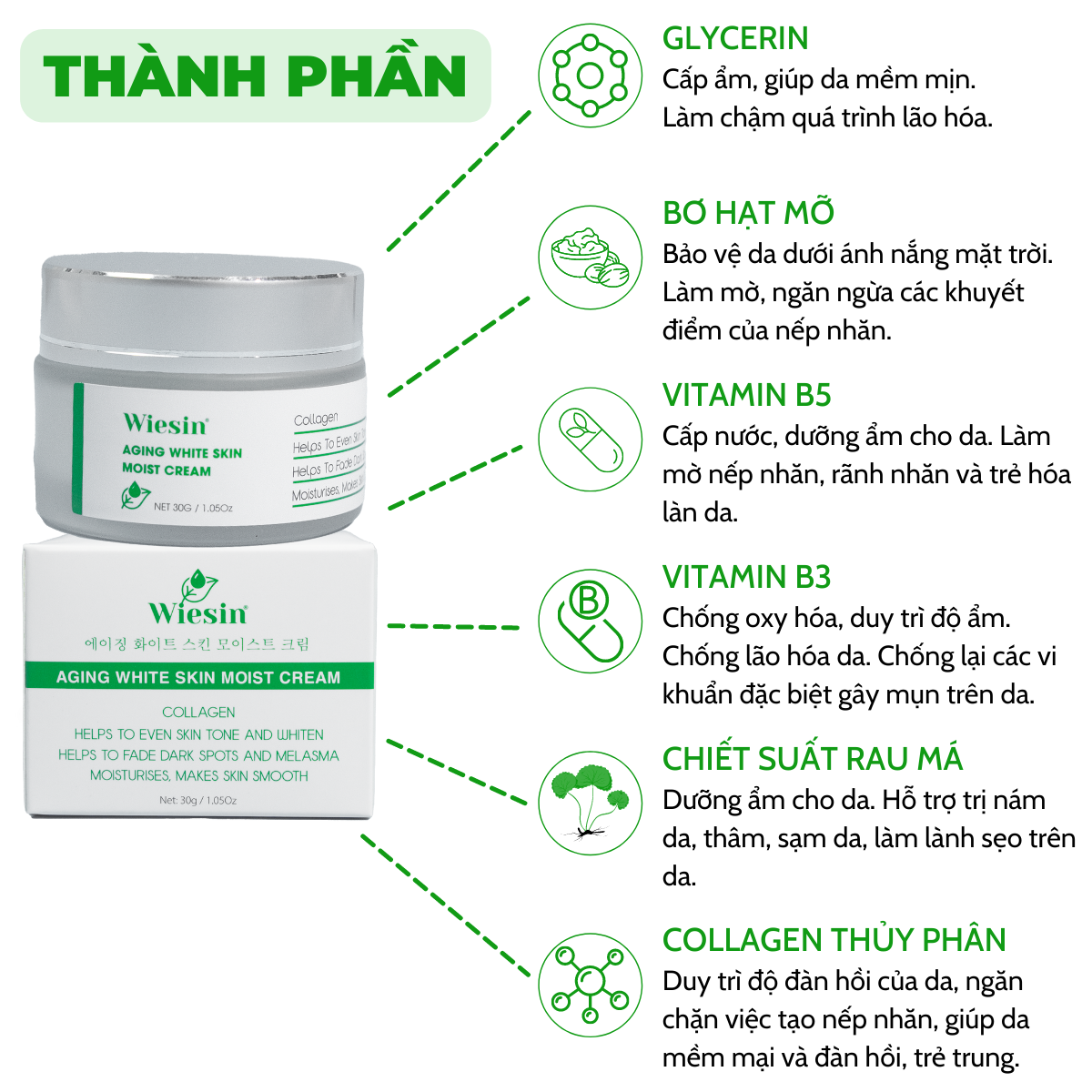 Mua tại TiktokKem dưỡng ẩm cho da dầu, cho da khô Wiesin Aging White Skin Moist Cream 30g - WS05