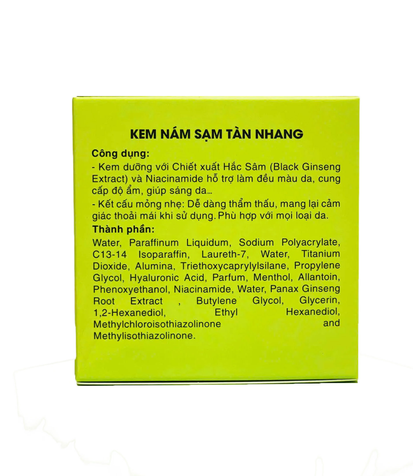 Công dụng: Kem dưỡng với Chiết xuất Hắc Sâm (Black Ginseng Extract) và Niacinamide hỗ trợ làm đều màu da, cung cấp độ ẩm, giúp sáng da…