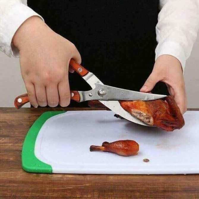 – Không cần dao, thớt mỗi khi chặt gà, vì là dùng kéo cắt gà Nhật Bản nên bạn có thể thao tác trực tiếp mà không cần điểm tựa, không lo bị bắn bẩn trên quần áo, sàn nhà; không phải lau nhà, rửa dao, thớt sau khi chặt xong, rất tiết kiệm công sức cho các bà nội trợ trong khoản vệ sinh, phần chuẩn bị cũng bớt cồng kềnh hơn rất nhiều.