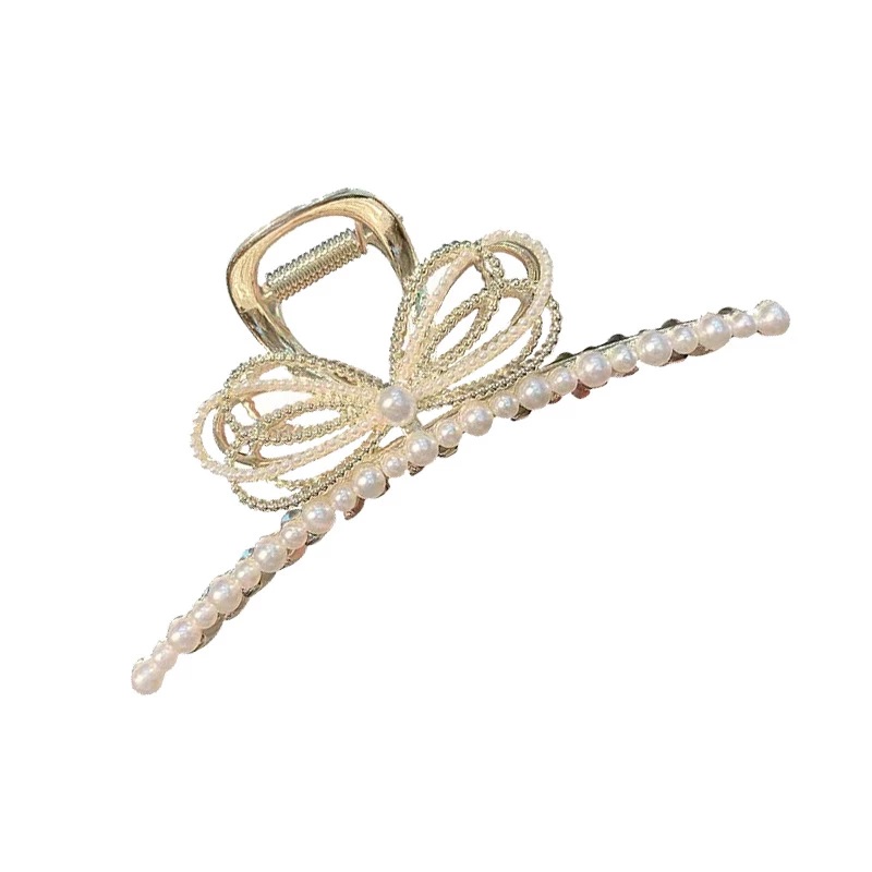 ✨Kẹp tóc dạng dài ngọc trai nơ
