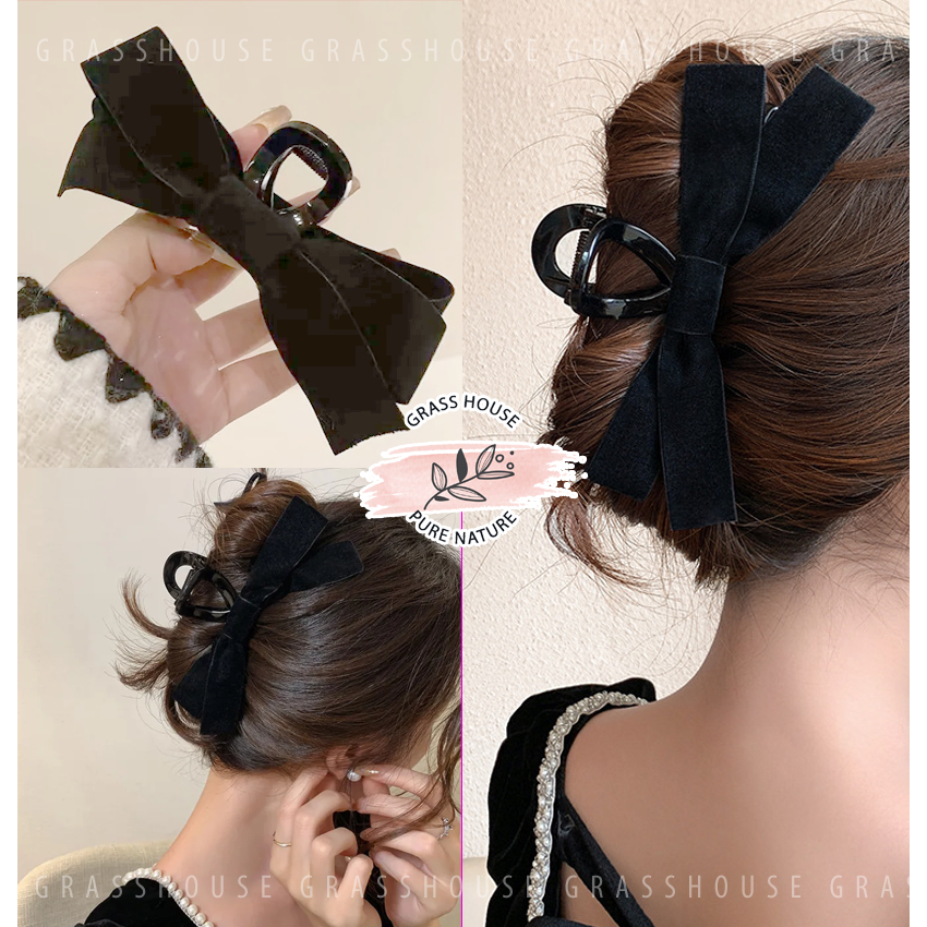 KẸP TÓC CÀNG CUA RĂNG CƯA HÌNH NƠ CHÉO ĐEN BÓNG BẢN NHỎ SANG CHẢNH CHO NÀNG THEO PHONG CÁCH HÀN QUỐC Vật Chất: Vải Satin bóng + Acrylic , Vải Nhung Mờ+ Acrylic Kích
