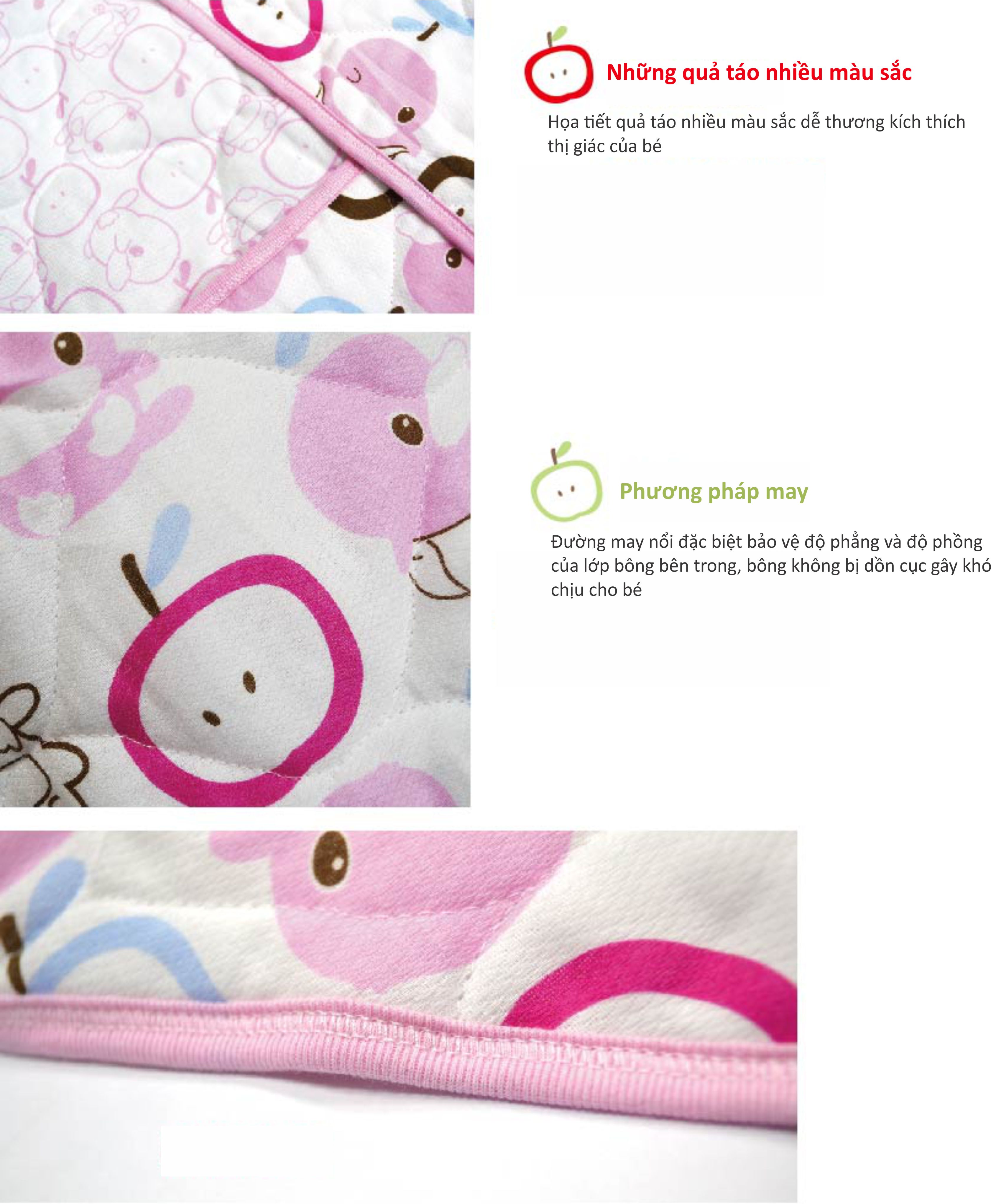Họa tiết bông hoa được đính trên nền vải gấm khổ lớn ba lớp. Gạc ba mềm và nhẹ sử dụng sợi hữu cơ nhẹ nhàng quấn bé. Ngoài khả năng thoáng khí và hút nước