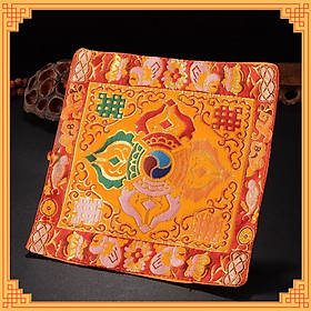 |100x100cm| Khăn trải bàn mật tông vải gấm Tây Tạng cao cấp thêu chày kim cang kép và bát kiết tường
