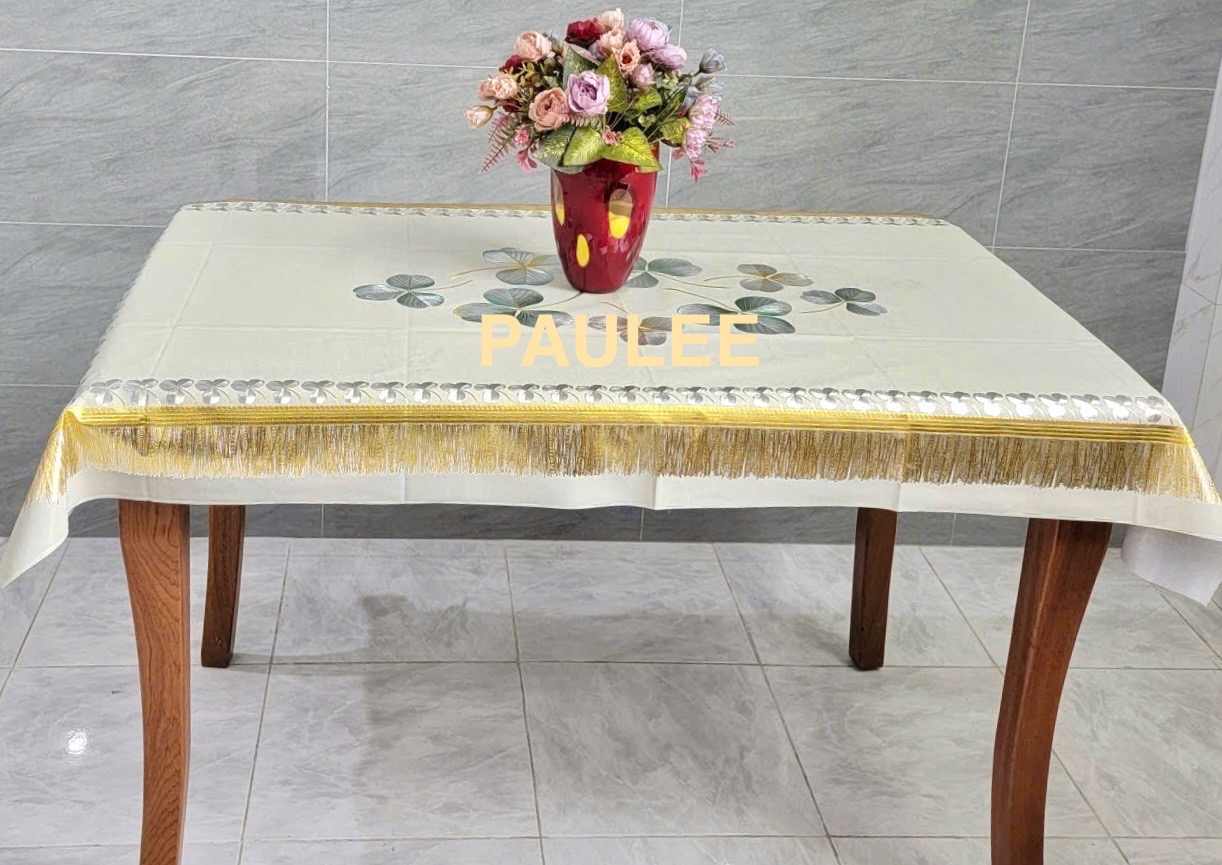 Khăn Trải Bàn PAULEE - FY 065K kiểu dáng hình chữ nhật kết hợp nhủ vàng , góp phần tô điểm cho không gian bàn ăn thêm sang trọng, hiện đại. - Chất liệu mềm