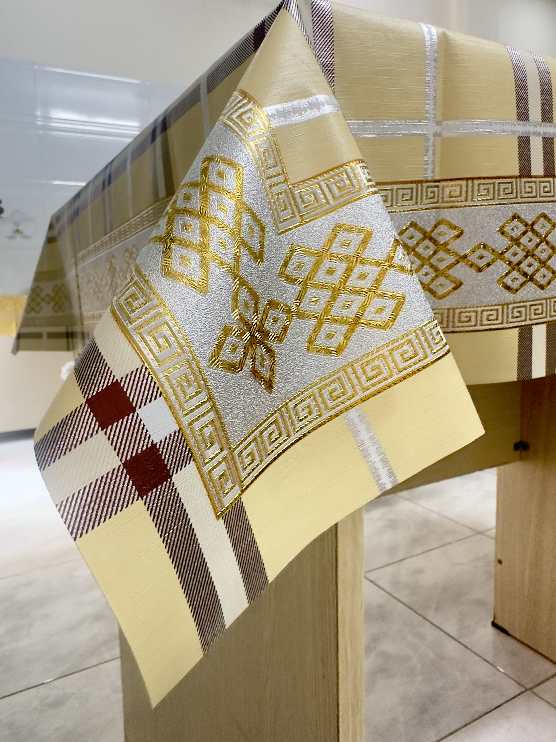 ✨Khăn trải bàn W.751 caro - nhũ vàng 90 x 150 cm, không thấm nước, dễ làm sạch