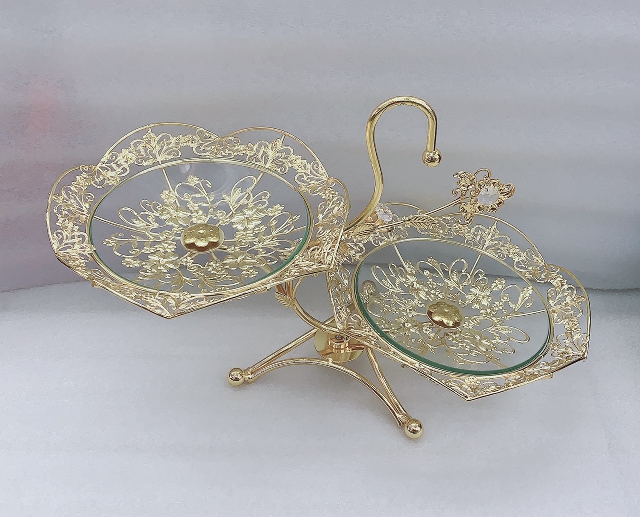 Kiểu dáng sang trọng Tiện dụng và tối ưu Làm quà tặng hoặc dùng trong lễ hội Khay thủy tinh 2 tầng là đồ gia dụng - trang trí nội thất đa năng có thể