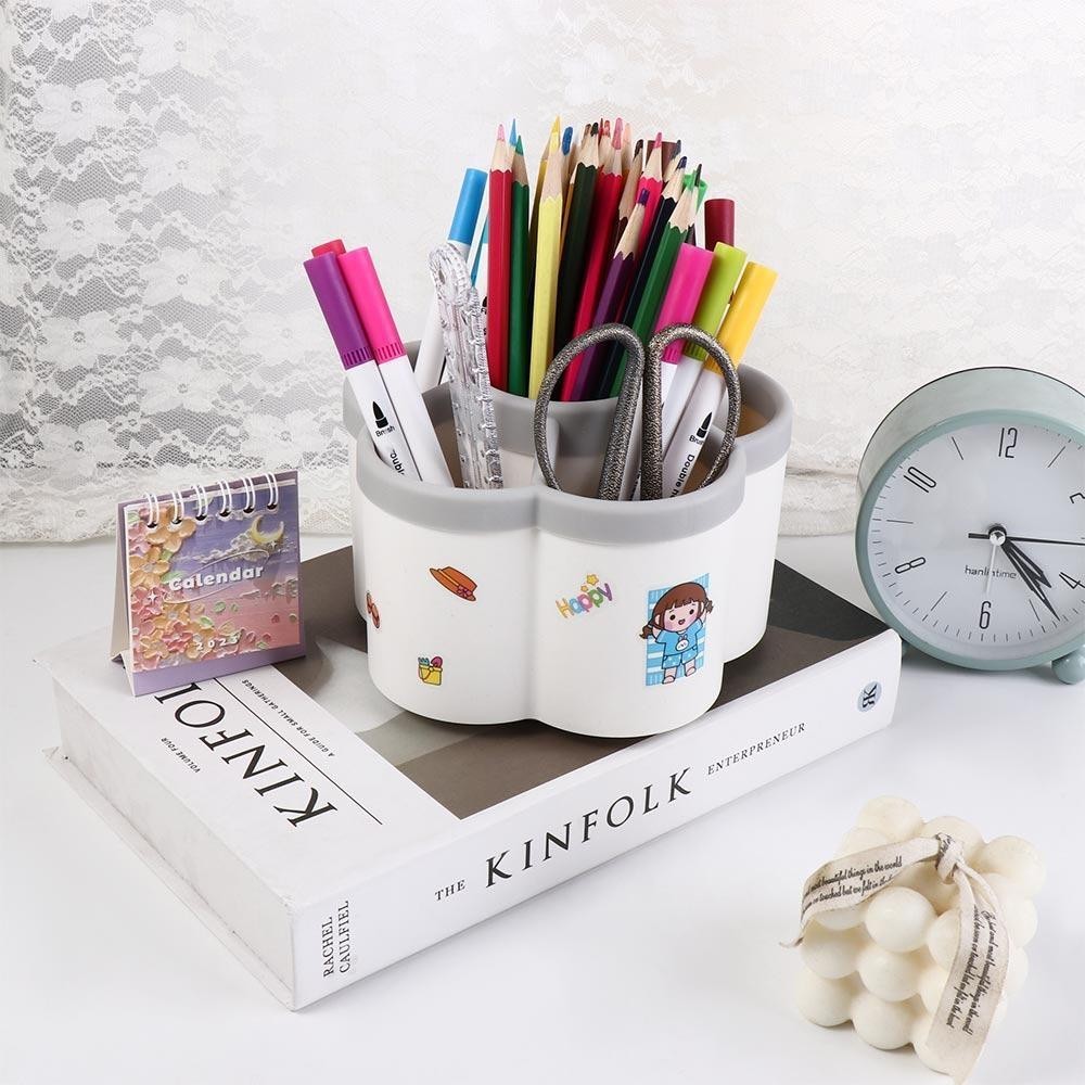 ✨Khay đựng bút hình cánh hoa xoay 360 độ, hộp đựng dụng cụ học tập, đồ dùng văn phòng