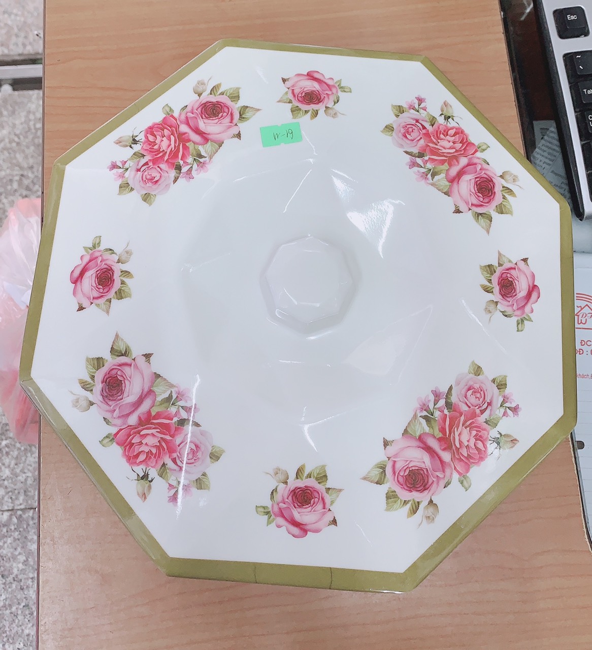 đặt bằng khung kim loại mạ vàng Đĩa bằng gốm sứ cao cấp Thiết kế tinh tế, sang trọng Thích hợp đựng bánh, hoa quả hay mứt tết.