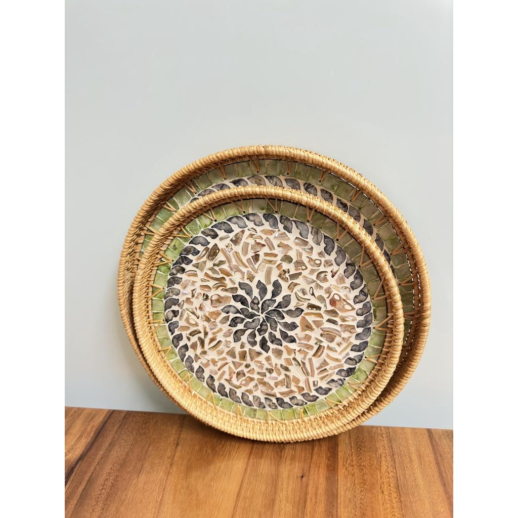 Khay Mây Khảm Trai Cỡ Lớn 56cm – Sang Trọng, Thủ Công Cao Cấp | ANKAN