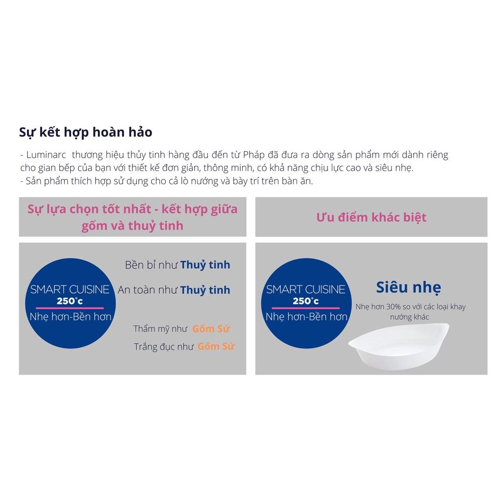 Khay nướng Luminarc được thiết kế một cách tinh tế, tối giản, siêu nhẹ, chống va đập gấp ba lần so với các đồ dùng bếp bằng gốm sứ khác, đủ sâu để chứa một lượng lớn thực phẩm. Hình dáng nhẹ nhàng, tiện dụng để dễ cầm nắm. Màu trắng sữa, phù hợp với tất cả các không gian bếp mà còn tôn nên sự sang trọng.