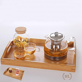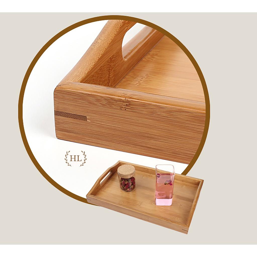 Khay gỗ chữ nhật đựng trà bánh được làm từ chất liệu gỗ tre tự nhiên cao cấp, tinh tế trong từng đường nét, màu sắc ấm dịu và gần gũ Khay gỗ trang trí