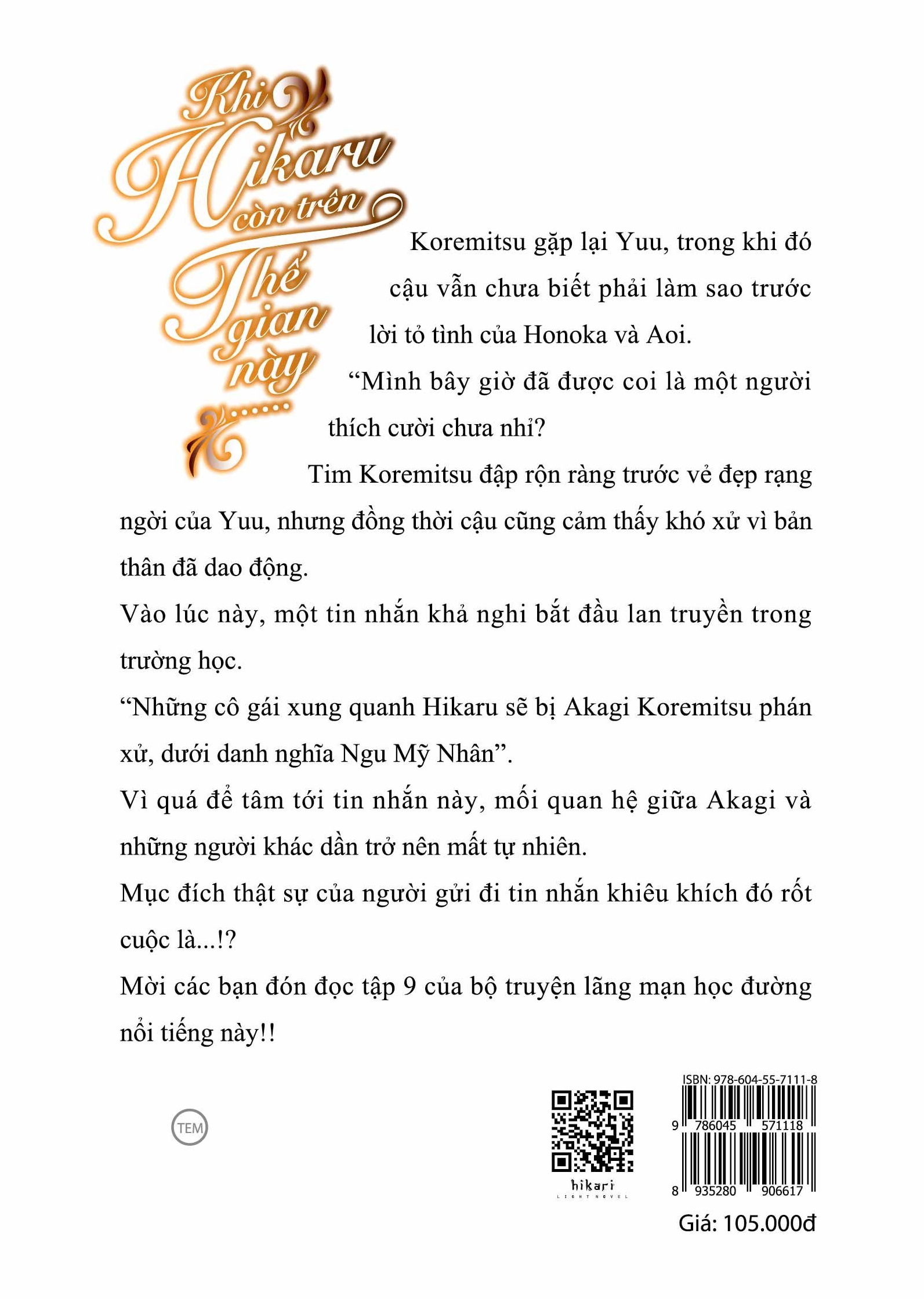 KHI HIKARU CÒN TRÊN THẾ GIAN NÀY……ROKUJOU (TẬP 9)Tác giả: Nomura Mizuki, Minh hoạ bìa: Takeoka MihoKhi Hikaru còn trên thế gian này…… là series light novel tiếp theo của bộ đôi tác giả Nomura Mizuk...