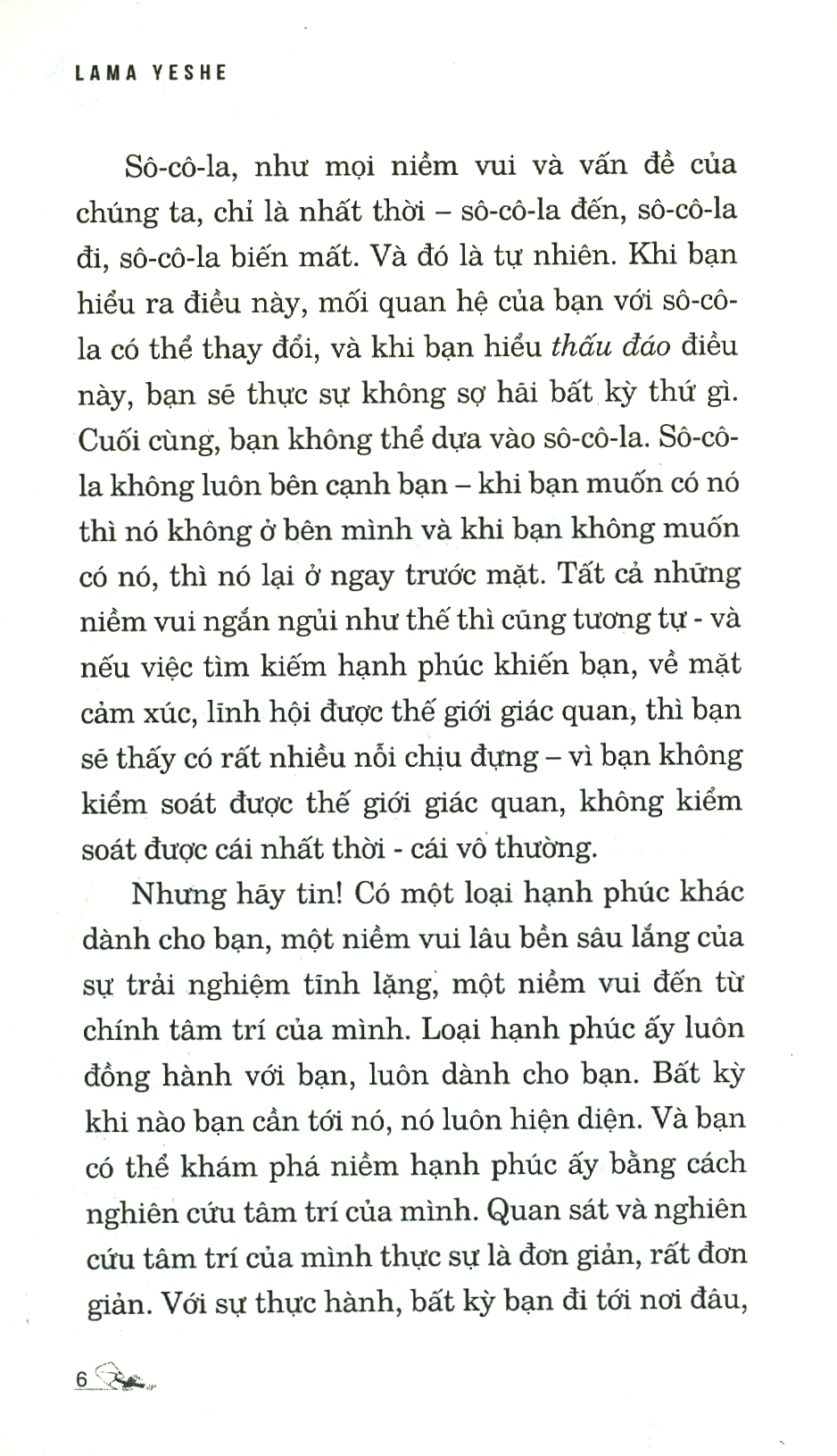 - Trung tâm Spirituality & Practice (Tâm linh và Thực hành) II. THÔNG TIN CHI TIẾT Công ty phát hành: Văn Lang Tác giả: Lạt-ma Thubten Yeshe Kích thước: 21 x 15 cm Năm xuất bản: 2018 Nhà xuất bản: Hồng Đức Số trang: 151 Hình thức: Bìa Mềm Mã sản phẩm : 8935074114716 Xuất xứ: Việt Nam