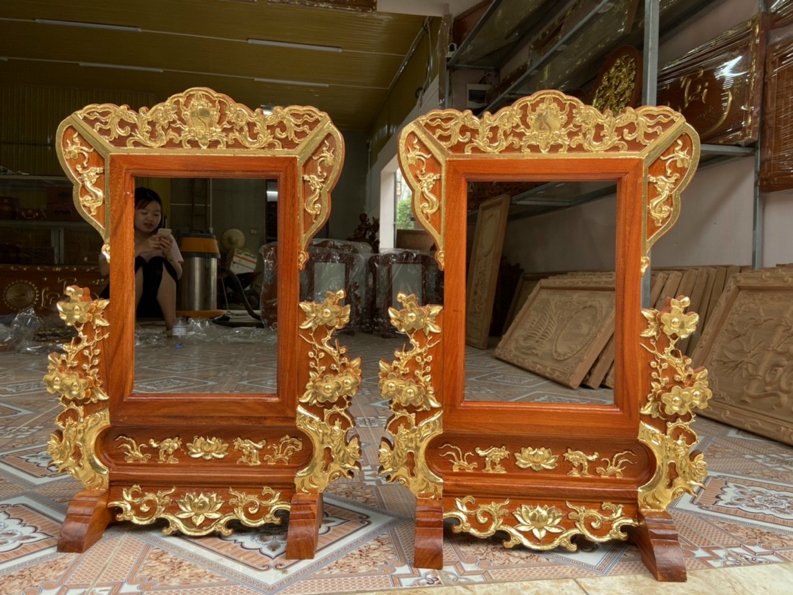 Khung Ảnh Thờ Đôi Chạm Hoa Mai Gõ Gõ Đỏ
