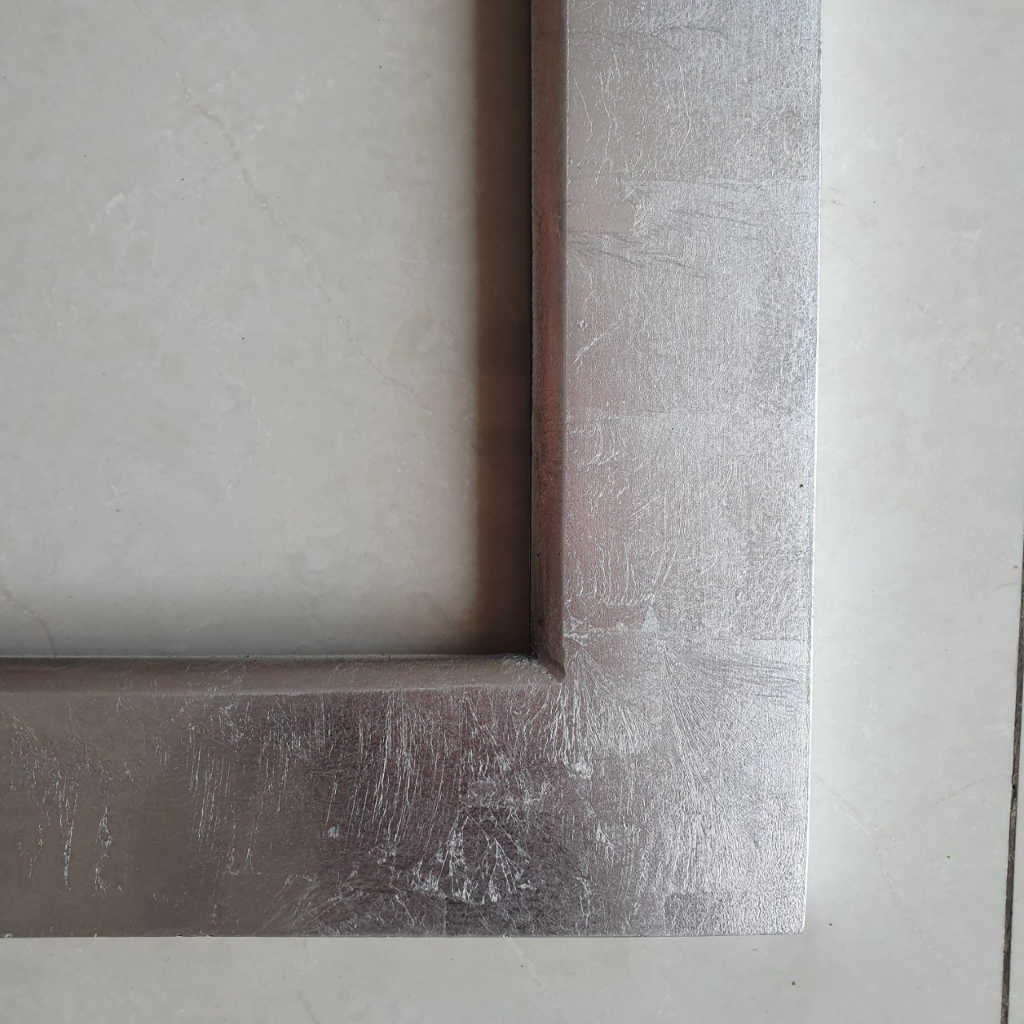 Khung gỗ sơn mài dát bạc vàng bóng đẹp, bền màu.