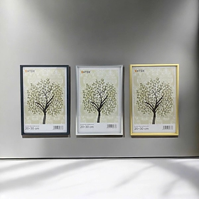 Khung hình nhôm Enter có thiết kế đơn giản với phần khung viền làm từ nhôm có 3 tone màu sắc vàng, bạc, đen phù hợp với nhiều mục đích trưng bày và sử dụng.