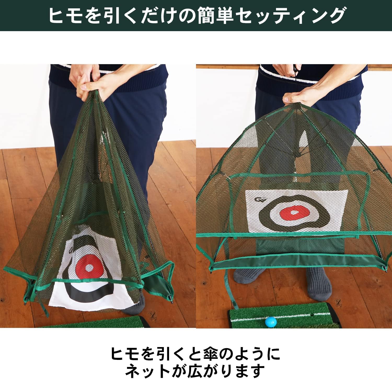 Dễ dàng cài đặt bằng cách kéo dây Khi bạn kéo dây, lưới sẽ mở ra giống như một chiếc ô. Khi không sử dụng, có thể gấp gọn để bảo quản dễ dàng Khi gấp