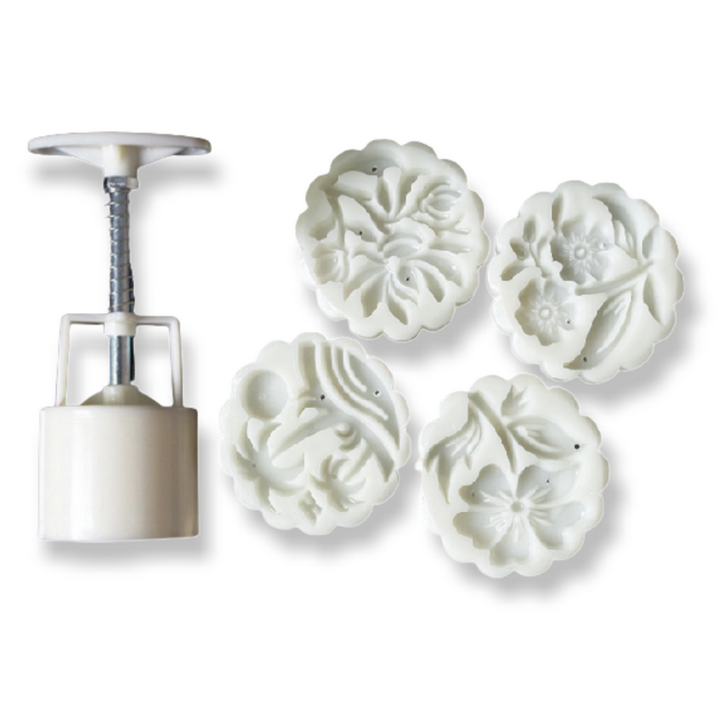 Khuôn làm bánh trung thu, bánh ngọt 4 mặt tròn hình hoa và chữ họa tiết đẹp, sắc nét dạng khuôn nén