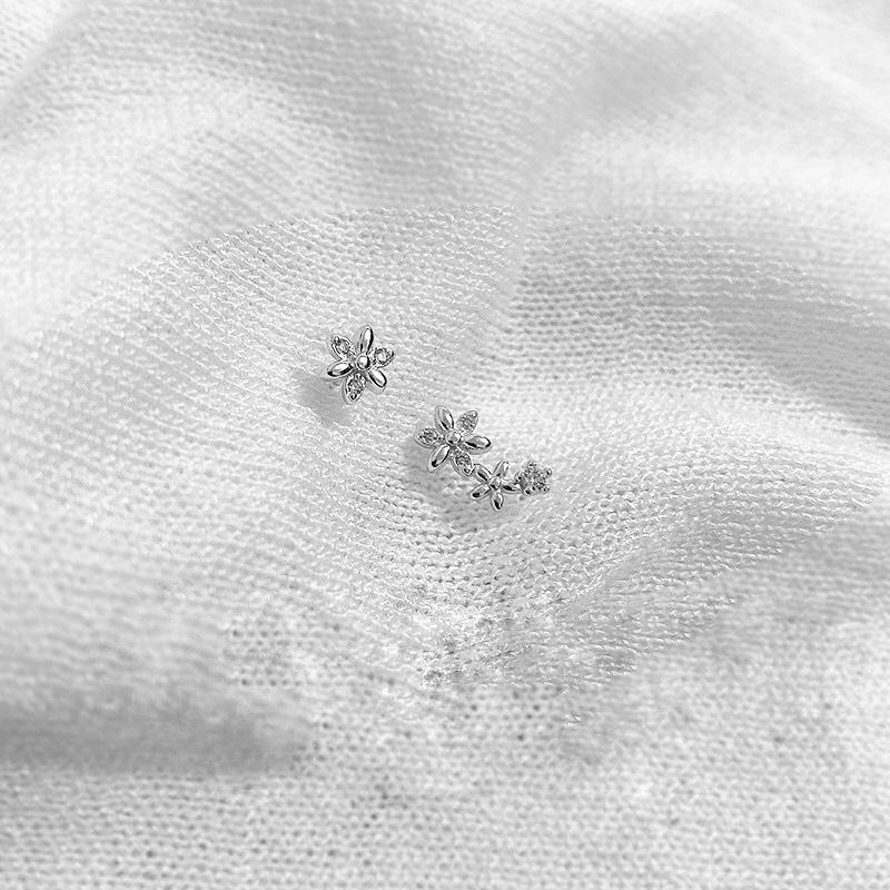 Khuyên tai bạc 925 nụ cọc cạch 1 bên 3 hoa 1 bên 1 hoa xinh xắn độc lạ Dế Bạc - K5840