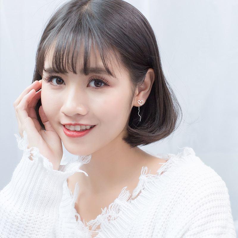 Khuyên tai bạc tim thả xích đơn giản. Đôi khuyên mang phong cách Hàn Quốc thời trang, nữ tính nhưng thực sự là mẫu dành cho những cô nàng trendy.