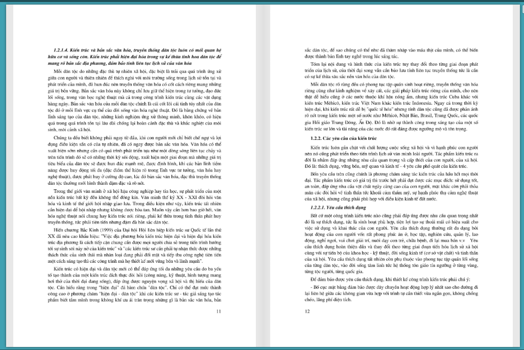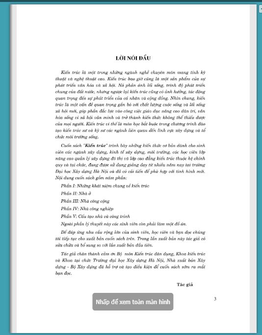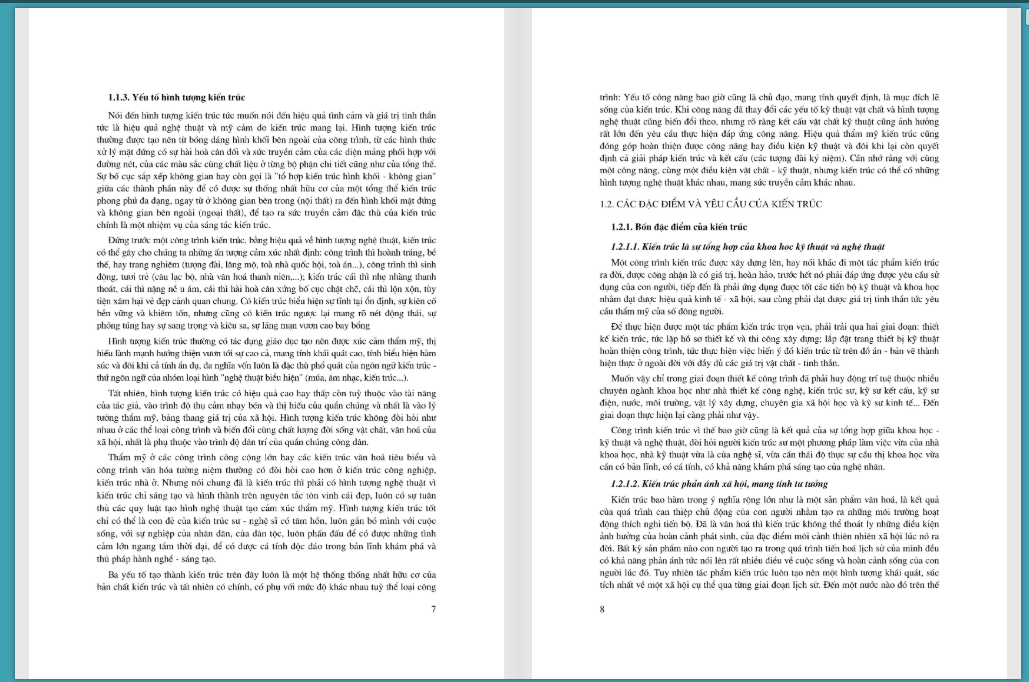 Kiến trúc là một trong những ngành nghề chuyên môn mang tính kỹ thuật và nghệ thuật cao. Kiến trúc bao giờ củng là một sản phẩm của sự phát triển văn hóa và xã hội. Nó phản ánh lôi sống, trình độ phát triển chung của đất nước, nhưng ngược lại kiến- trúc củng có ảnh hưởng, tác động quan- trọng đến- sự phát triển của cá nhân- và cộng đồng. Nhìn chung, kiến trúc là một vấn đề quan trọng gắn bó với chất lượng cuộc sống và lối sống xã hội mới, góp phần đắc lực vào công việc giáo dục nâng cao dân trí, văn hóa sông vì xã hội văn- minh và trở thành kiến thức không the thiếu được của mọi người. Kiến trúc vì thê là môn học bắt buộc trong chương trình đào tạo kiến trúc sư và kỹ sư các ngành liên quan đến lĩnh vực xây dựng và tô chức môi trường sống.