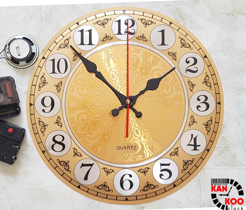 Bộ máy đồng hồ treo tường phát nhạc gồm 4 món: - 1 Máy đồng hồ treo tường 12888 hoặc M2188 có dây đấu vào bộ phát - Máy phát nhạc loại tốt: 3 bản