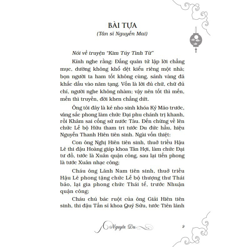 Mua tại TiktokCuốn "Kim Túy tình từ" này được ông Huỳnh Thúc Mậu dịch lại từ bản chính gốc " Kim Túy tình từ" (bản cũ do cháu dòng họ Nguyễn Du là Nguyễn Mai hiệu Long Khê hữu tuyết cất giữ, có chú dẫn điển tích rõ ràng).