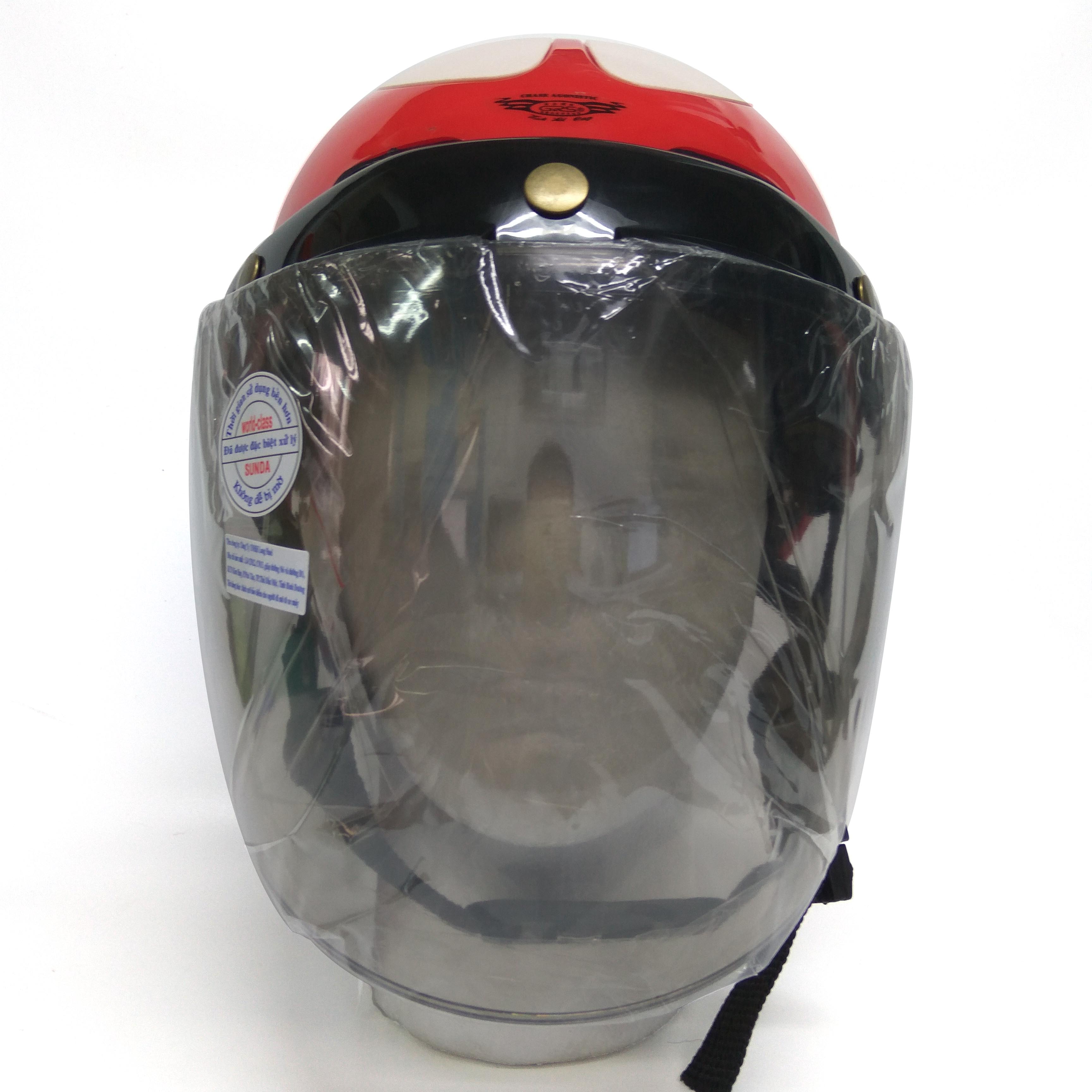 Mũ bảo hiểm nửa đầu có kính Sunda 180B tem là phụ kiện không thể thiếu khi đi xe mô tô, xe máy, mang lại sự an toàn và phong cách thời trang cho người sử