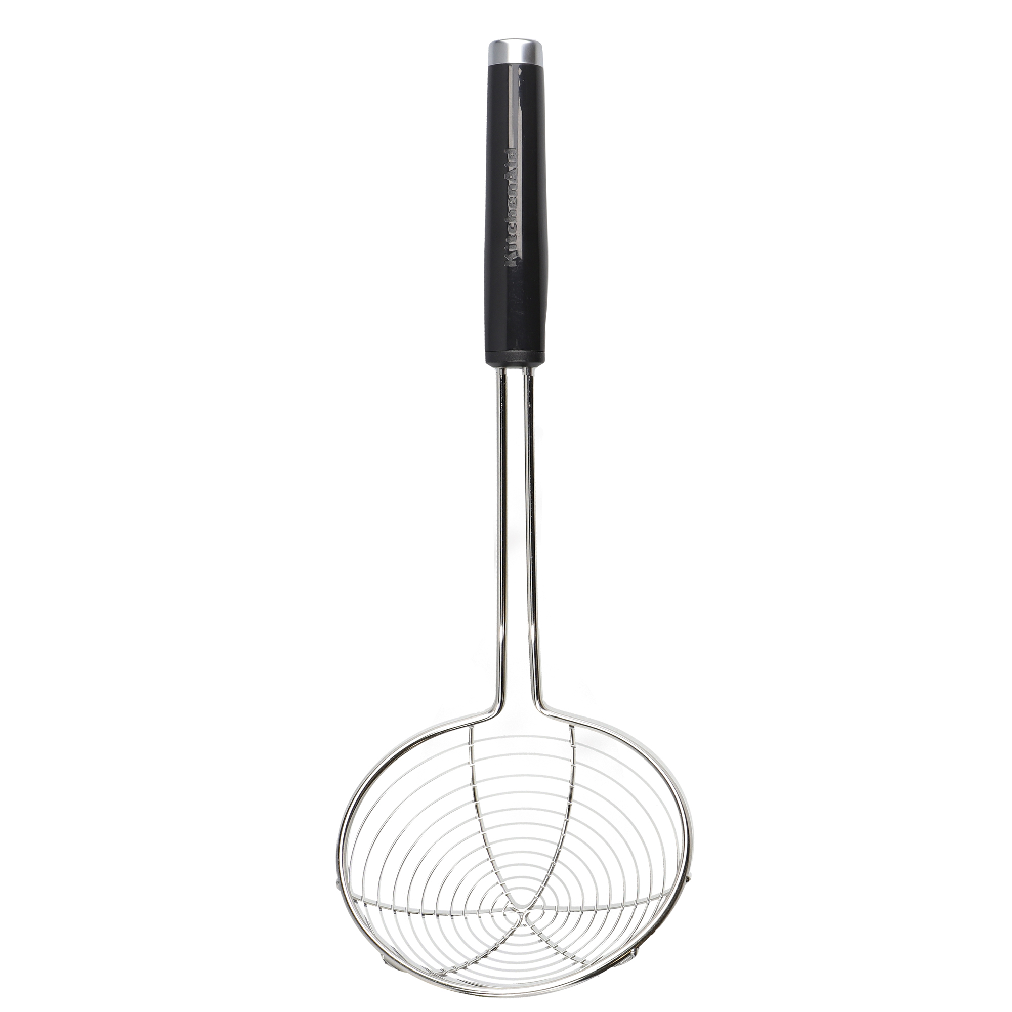Vá vớt KitchenAid với thiết kế phần đầu được làm bằng thép không gỉ chắc chắn có diện tích rộng phù hợp sử dụng nấu các món chiên ngập dầu hoặc vớt thực phẩm. Tay
