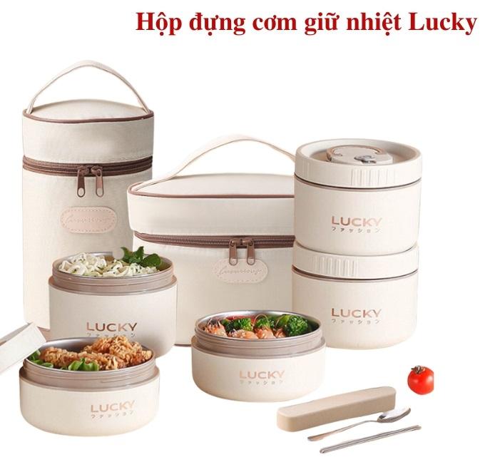 Mua tại TiktokKOSUYTU giới thiệu siêu phẩm cho giới văn phòng, và di động: Hộp Cơm Giữ Nhiệt 3 Tầng Rời Lucky Tặng Kèm Túi Và Thìa Dĩa Chất Liệu Inox 304 - Hàng Chất Lượng