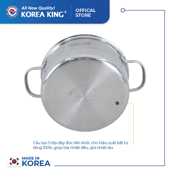 Đánh giá chi tiết KP-22S5PLY Nồi inox 5 lớp đáy liền Korea King (Nồi, nắp đều bằng inox, đường kính 22cm, dung tích 4L)-Hàng chính hãng Mô Tả Sản Phẩm NỒI INOX 5 LỚP