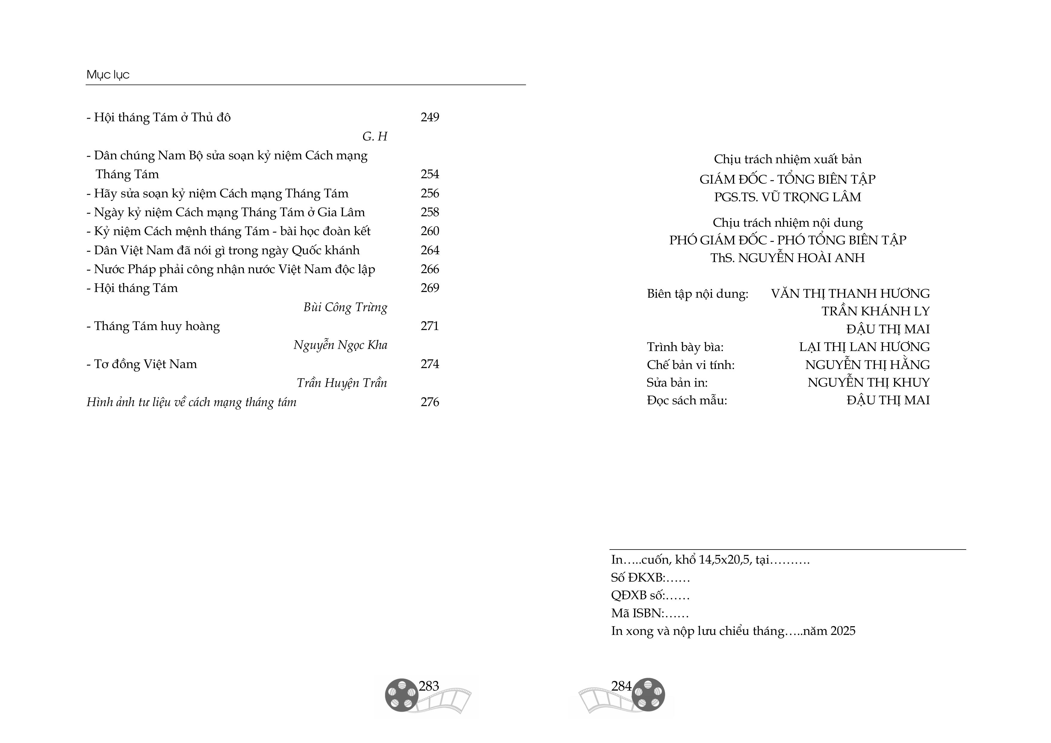 Nhằm tái hiện không khí hào hùng của những ngày lịch sử và khơi dậy tinh thần yêu nước, Nhà xuất bản Chính trị quốc gia Sự thật đã phát hành cuốn sách Dấu ấn Cách mạng Tháng Tám năm 1945, do Nguyễn Thái Bình chủ biên. Tác phẩm là một công trình tư liệu quý, kết tinh từ nguồn tài liệu gốc như Văn kiện Đảng toàn tập, các bài viết từ Báo Cứu quốc, Sự thật, Độc lập... và nhiều văn kiện lịch sử như Tuyên ngôn Độc lập, Lệnh khởi nghĩa, lời hiệu triệu của Việt Minh…