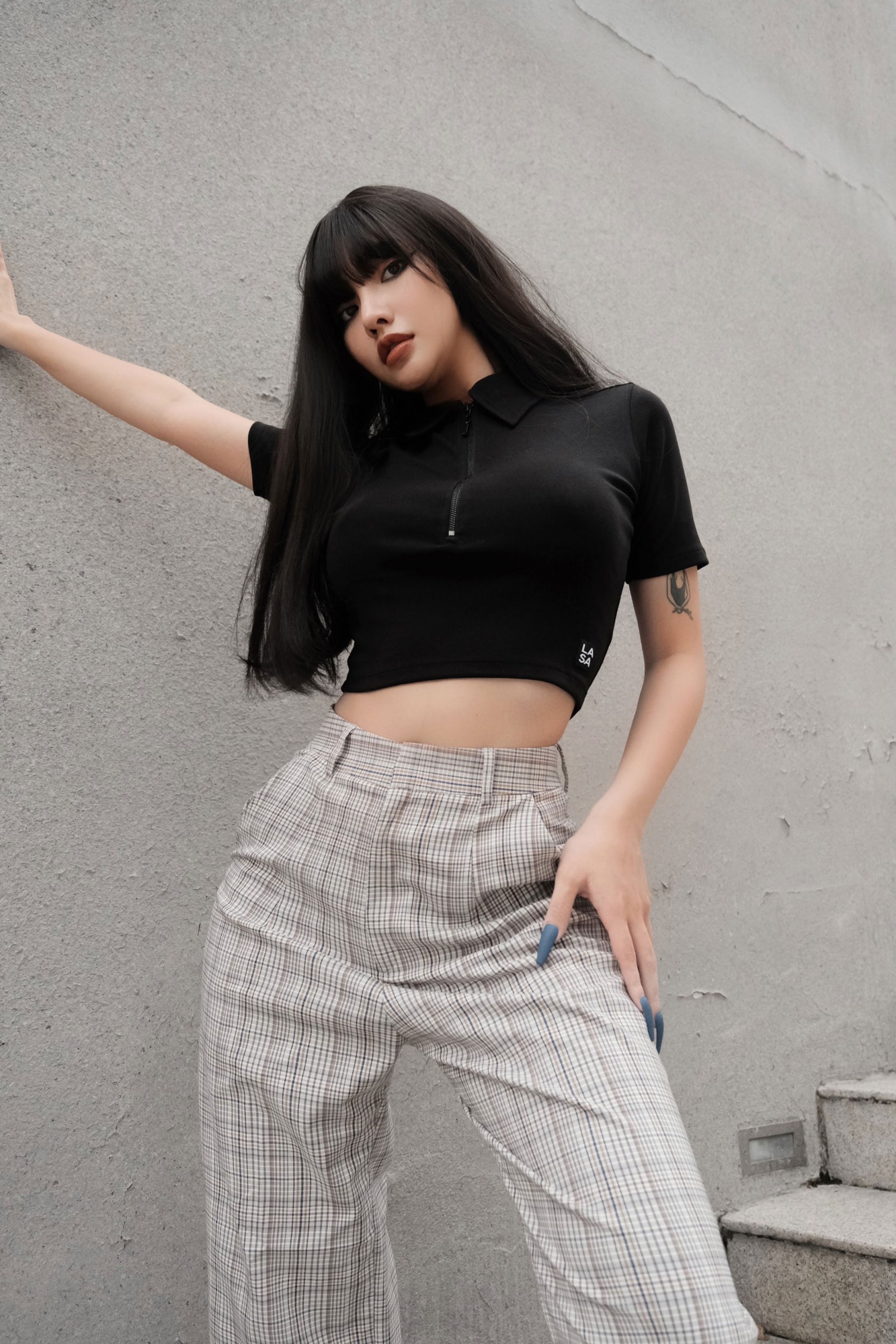BORIP COTTON 100% 4 CHIỀU, CHẤT DÀY MỀM, THOÁNG MÁT ÁO MÀU ĐEN, CỔ POLO DÂY KÉO SẮT YKK FORM ÔM, TAY NGẮN, CROPTOP ĐIỂM NHẤN TAG LOGO LAAS TRÊN LAI ÁO