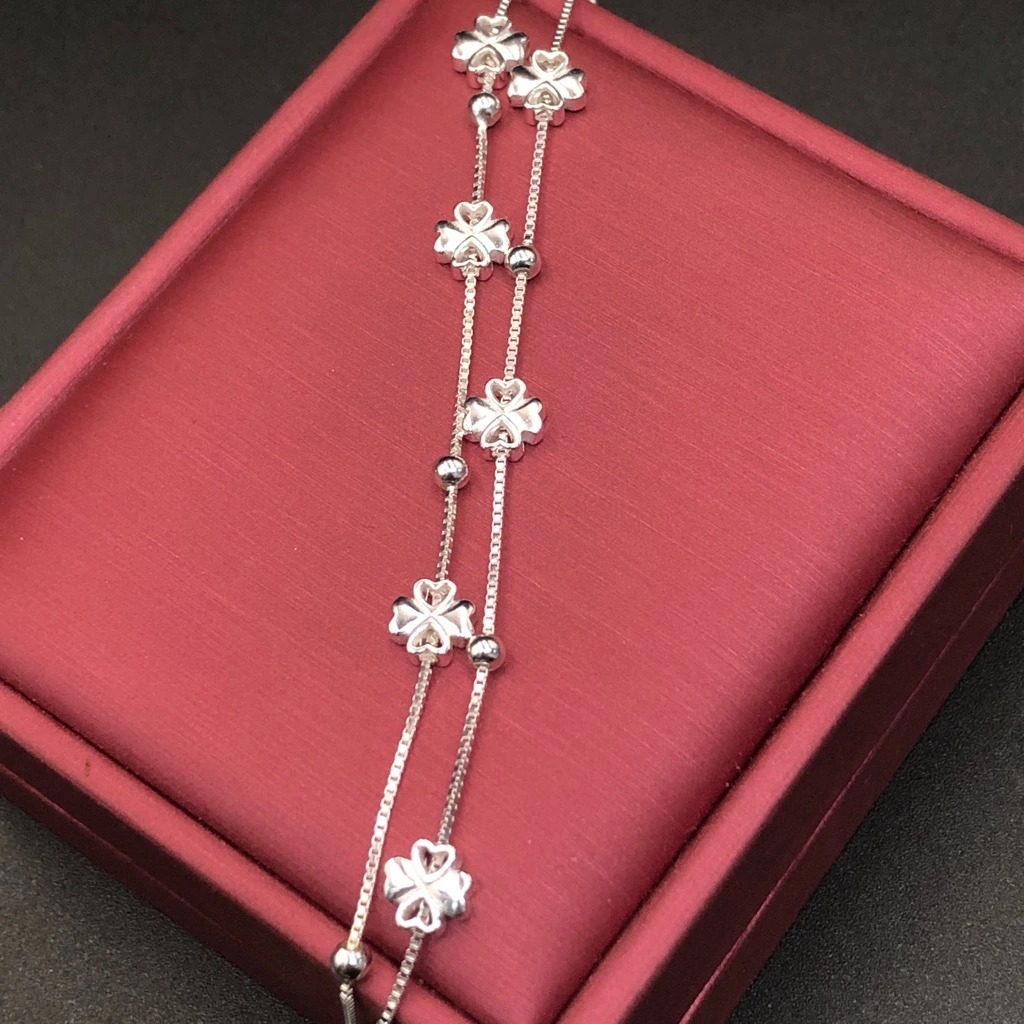 Lắc tay nữ cỏ 4 lá dây kép LTU508 Bạc Hiểu Minh